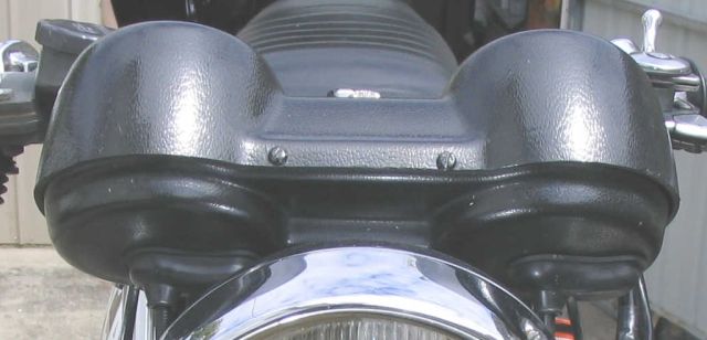 The binnacle top half has a cut out for the speedo trip meter reset on the left initially for the Smiths and on both sides for the Veglia equipped bikes. The two halves were screwed together with a pair of slotted self tapping screw on all year models.